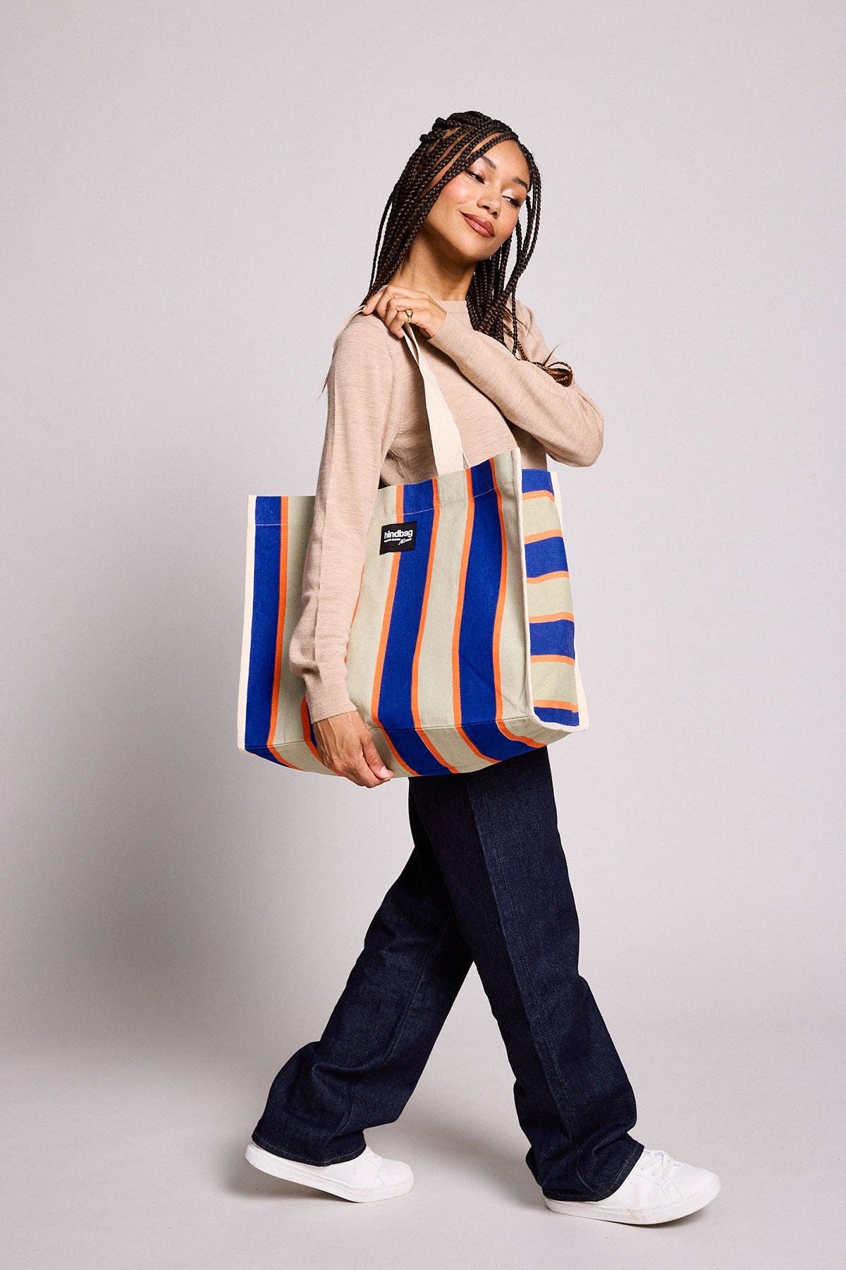 El bolso en edición muy limitada El bolso tote flexible de algodón orgánico a rayas Azul eléctrico Para celebrar los 10 años de Hindbag, hemos reinventado el icónico bolso tote en versión a rayas y ultra colorido. Grande y práctico, es el bolso perfecto para acompañar a tus clientes a todas partes este verano: en la ciudad, en la playa o de escapada. Sin adornos, solo lo esencial: gran capacidad, asas resistentes y un look que irradia sol. Y para marcar la ocasión, una etiqueta especial "Hindbag 10 años" como guiño a esta edición de coleccionista. ¡Atención, disponible en cantidad muy limitada!