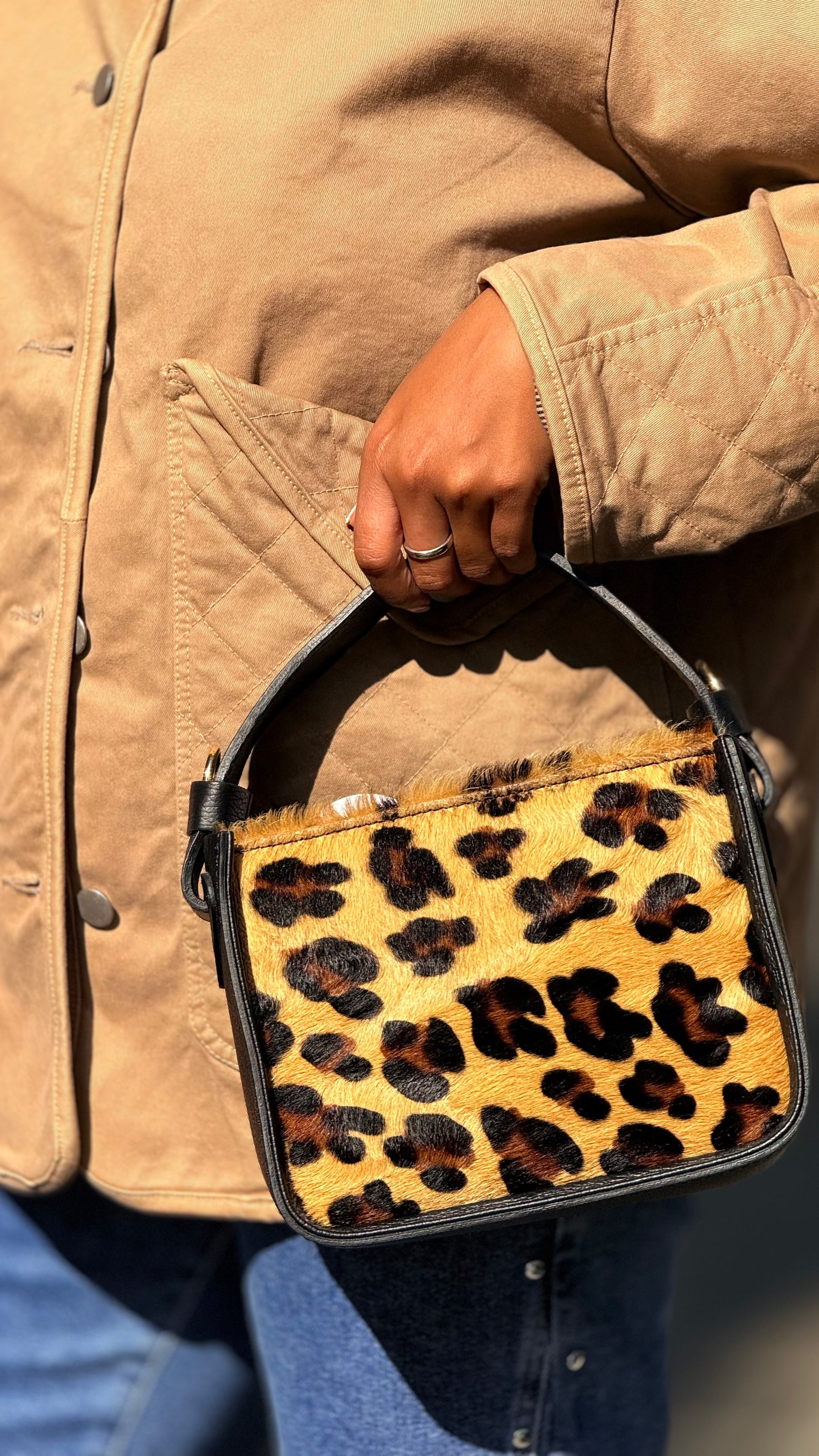 Bolso en piel 100% con detalle de pelito frontal en animal print