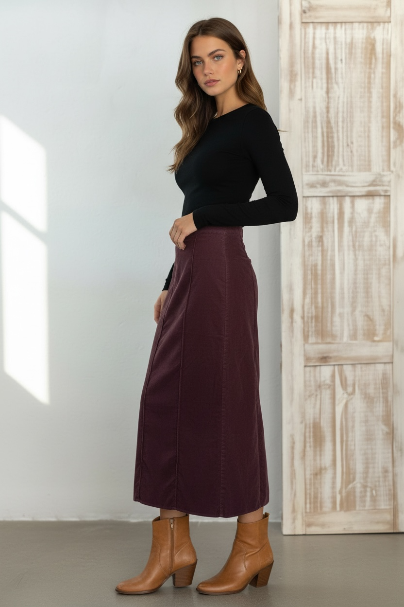 La falda micropana Berenjena presenta un corte evasé y un diseño con líneas verticales. Este estilo favorece la figura al crear un efecto alargado, ideal para diversas ocasiones. La micropana ofrece suavidad y comodidad, contribuyendo a una experiencia de uso placentera.