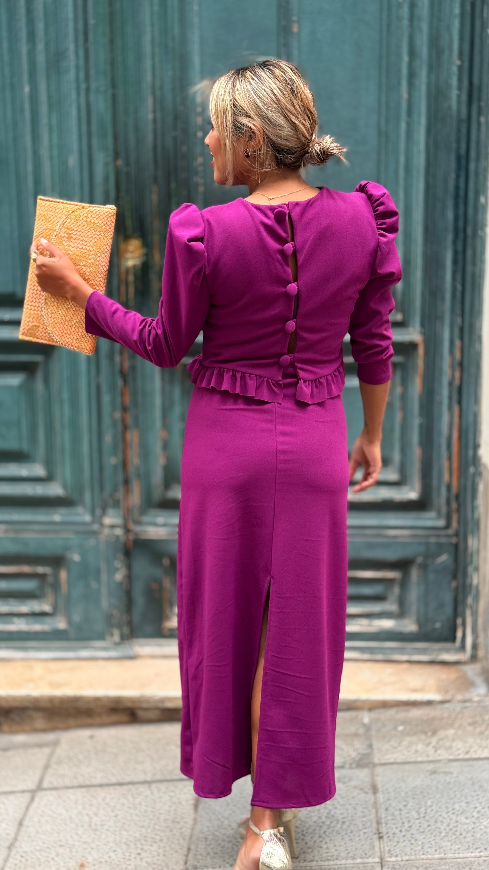 Disfruta del elegante y versátil Conjunto Viena Liso Caldera, ¡la opción perfecta para cualquier evento especial! Su top de manga francesa con hombros abullonados y mini volante fruncido en el bajo aportan un toque sofisticado y femenino. Completa tu look con la elegante falda de corte recto. ¡Un conjunto refinado para destacar en bodas, bautizos y más!