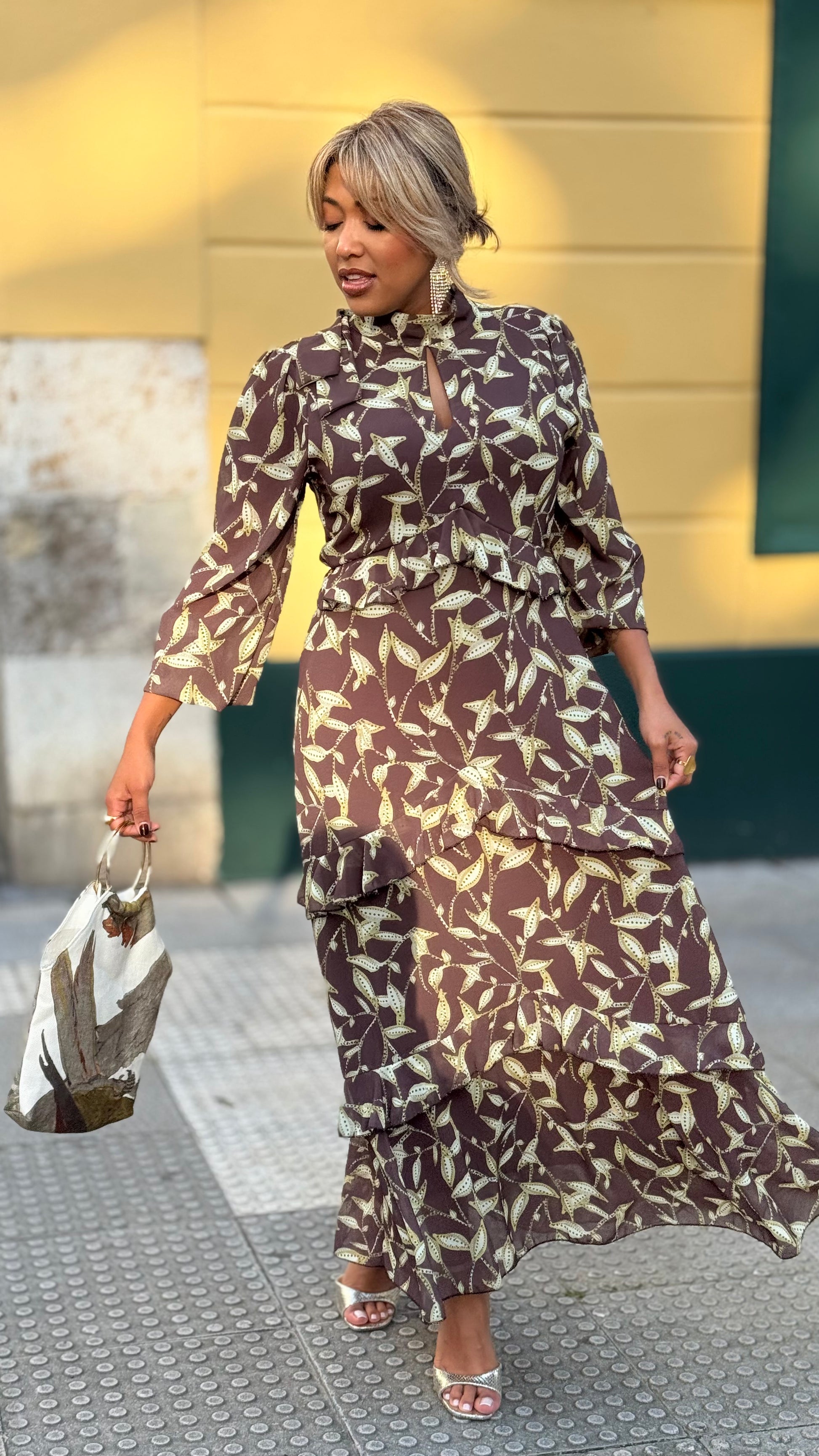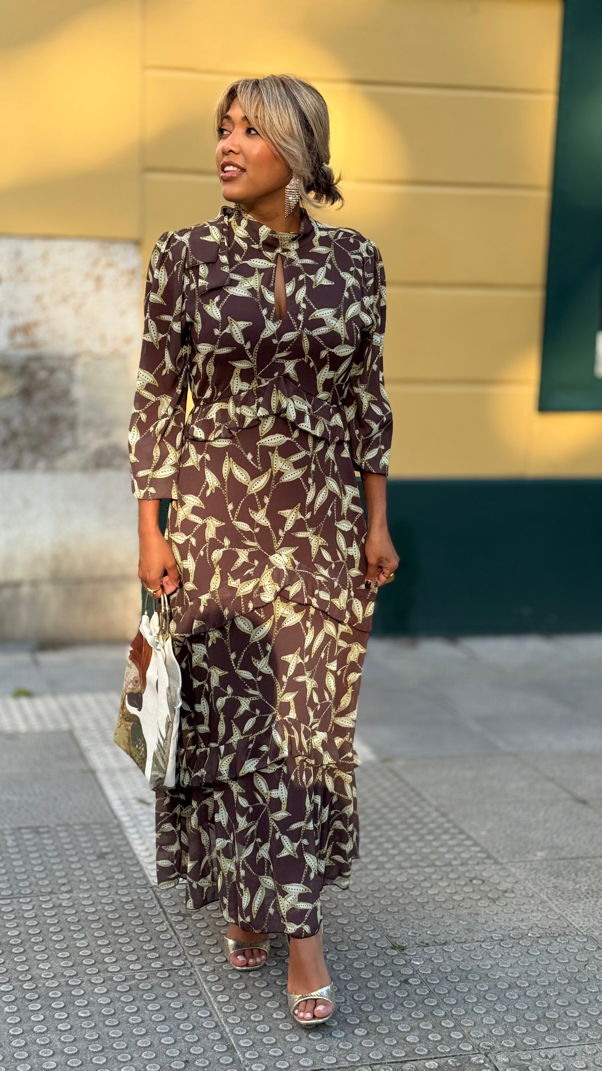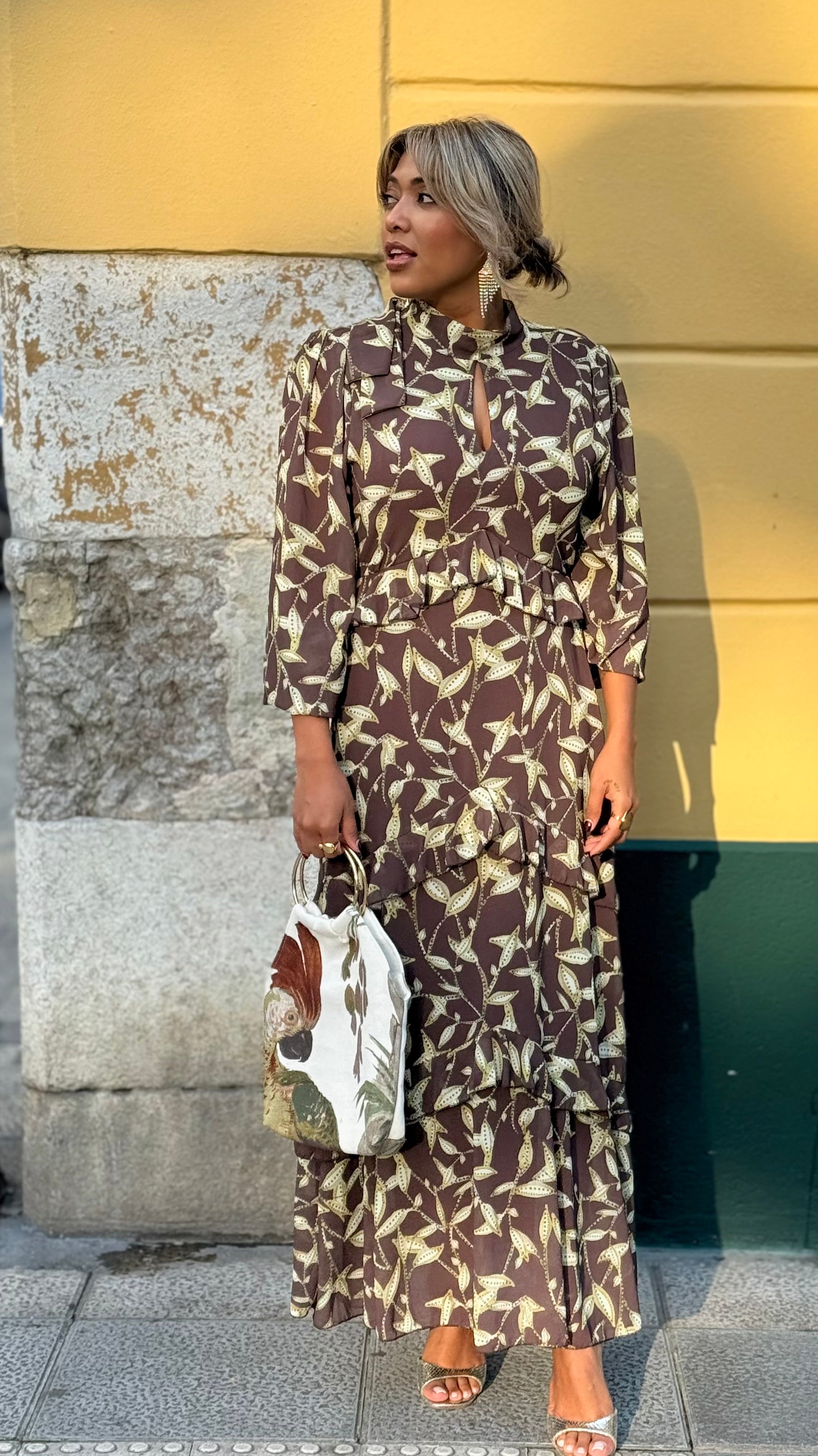 Este vestido Amichi cuenta con una elegante manga larga y un detalle de volante que recorre su largo. Perfecto para lucir un estilo moderno y sofisticado mientras te mantiene abrigada. Hecho con materiales de calidad que garantizan comodidad y durabilidad.