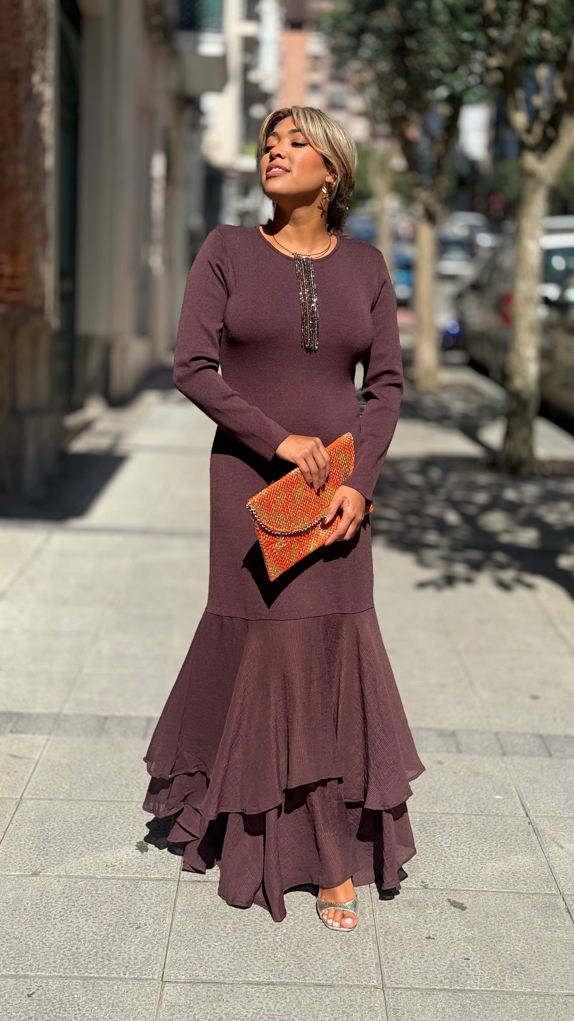 Este Vestido Cádiz es perfecto pare verte en un estilo elegante. Confeccionado con punto grueso, manga larga y cuello redondo, su detalle de volante en tela fina agrega un toque femenino y elegante. Además, su falda con caídas distintas te permitirá lucir un look único y moderno. ¡Hazte con él ahora y destaca en cualquier ocasión!