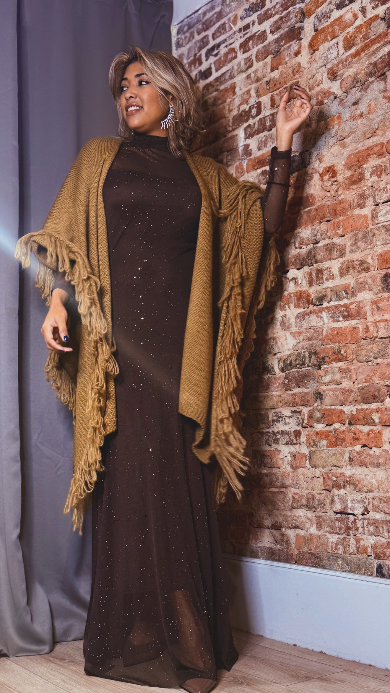 Vestido doble brillo marrón
