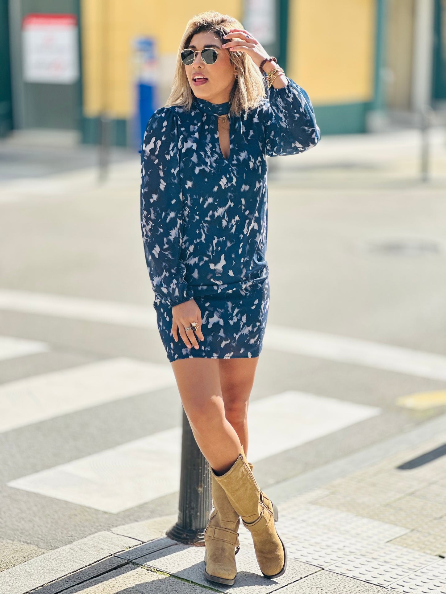 Este vestido pincelada es el indicado para resaltar tu elegancia y estilo. Confeccionado en tela de gasa, su diseño queda perfecto , mientras que el detalle de agujero en el pecho y la atadura en la parte trasera añaden un toque de sensualidad.